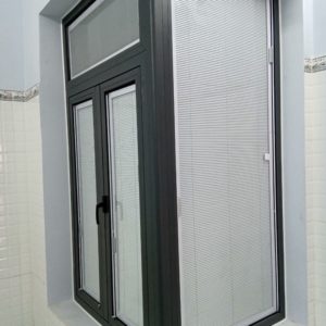 Cửa Nhôm Kính Kết Hợp Rèm Trong kính Thông Minh Kéo tay Và Motor