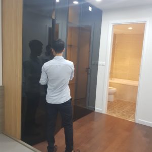 cánh kính tủ áo mở bản nhôm dầy 1,2 ly.tay cầm thẳng.thanh nhôm có mầu đen.