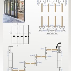- Cửa trượt slim sử dụng nhiều loại bánh xe cho tải trọng cánh khác nhau.