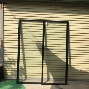 chất liệu cánh là nhôm thanh định hình mầu đen,độ dầy của thanh nhôm là 1,2 ly.bản nhôm thanh khung là 20 x 45, độ dầy thanh nhôm có tay cầm là 20 x 67 dầy 1,2ly, cánh sử dụng kính cường lực 5 ly,mầu kính đặt theo yêu cầu