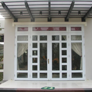 – Thi công lắp đặt cửa nhôm kính với cửa đi hai cánh mở quay.